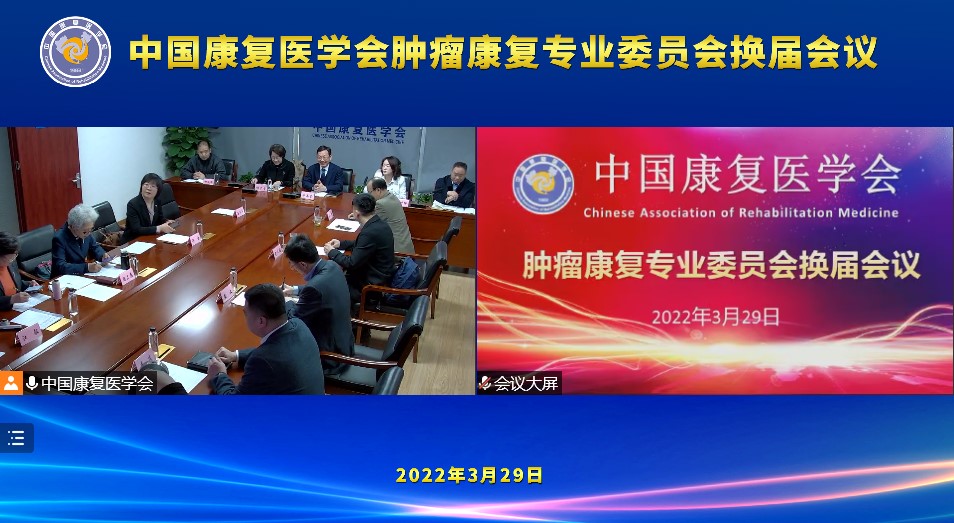 近日,中国康复医学会肿瘤康复专业委员会换届会议在北京召开。受疫情影响,会议采取线上、线下相结合的形式举行,主会场设在中国康复医学会会议室。