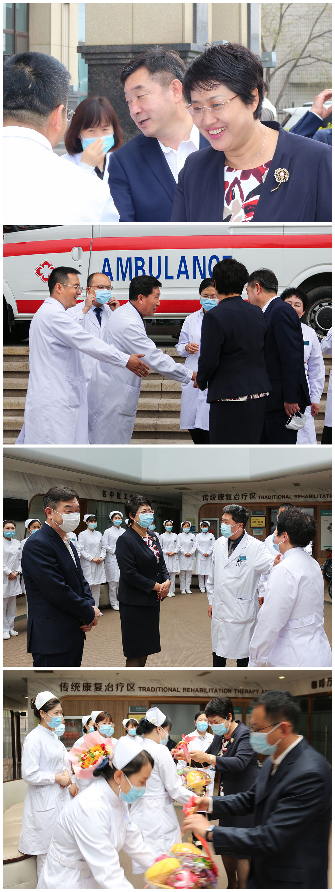 温暖的五月,第110个"5.12"国际护士节伴随着春天的微风悄然而至。上午,金普新区管委会副主任王杰,金普新区卫生健康局局长张文卿、副局长赵丹、赵虎、党委副书记梁文等领导一行,来到立光康复医院亲切慰问工作岗位上的白衣天使们,并为她们送上美丽的鲜花、香甜的水果和节日的祝福。