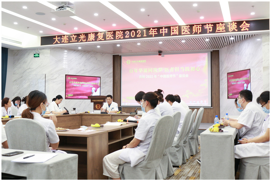 下午4点,立光康复医院召开“中国医师节”座谈会。陶方院长出席会议并讲话,他强调,要深入学习贯彻习近平总书记重要系列讲话精神,营造尊医重卫的良好氛围,激励广大医务工作者为打赢疫情防控攻坚战,建设健康中国、增进人民健康福祉作出新贡献。参会医师围绕“如何为患者办实事”、“如何加强医患沟通”、“如何落实精准医疗评估方案”等依次发言并进行讨论。